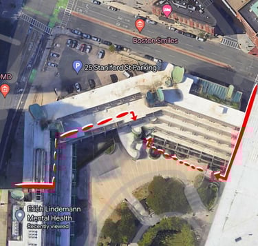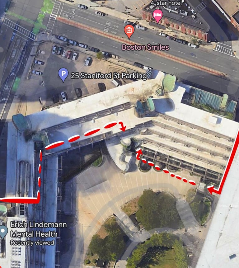 Enter the building from the Staniford Street passage or Merrimac Street along the path between Lindemann and the Courthouse.